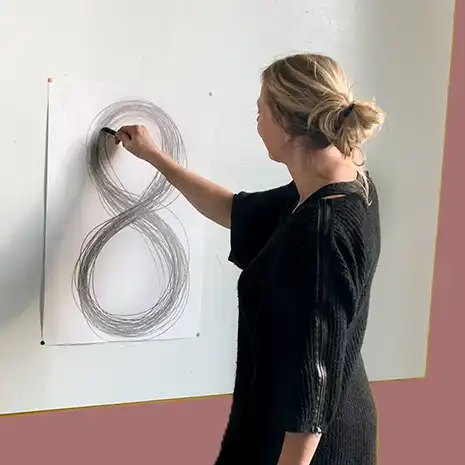 De tekenbewegingsmethode is beeldende therapie waarbij je staand, achter een groot papier, ritmische tekenbewegingen maakt. Dit stimuleert je lichaamsbewustzijn, concentratie en zelfreflectie zonder oordeel. Het tweehandig werken bevordert de samenwerking tussen beide hersenhelften, waardoor emoties, gedachten en lichaam beter met elkaar in balans komen.